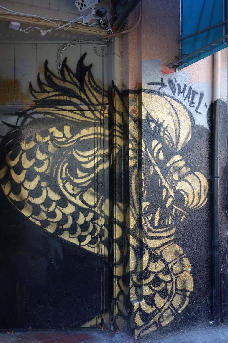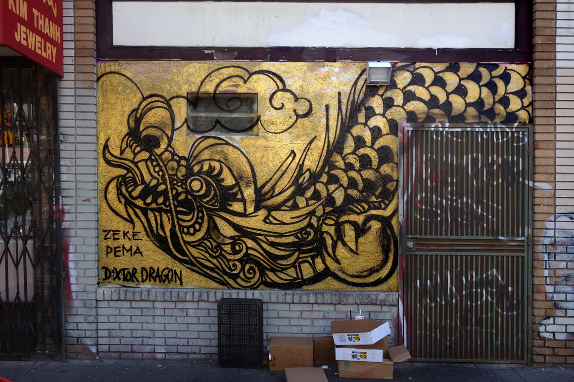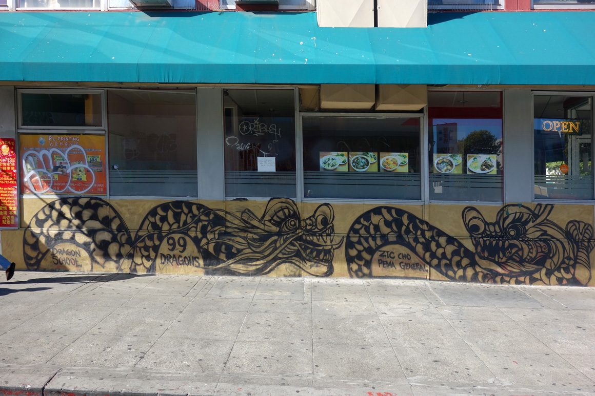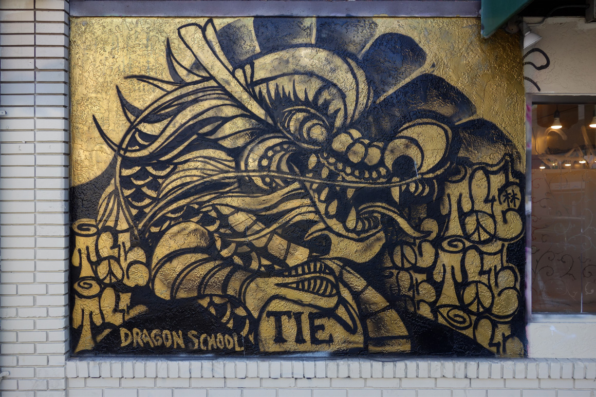 It is significant that the golden dragon raised its’ head in 2015 in Oakland Chinatown. During the course of the year it was painted on walls all around Chinatown making a bold statement by claiming the walls and elevating Chinatowns visibility simultaneously promoting pride in the culture and celebration of the arts.